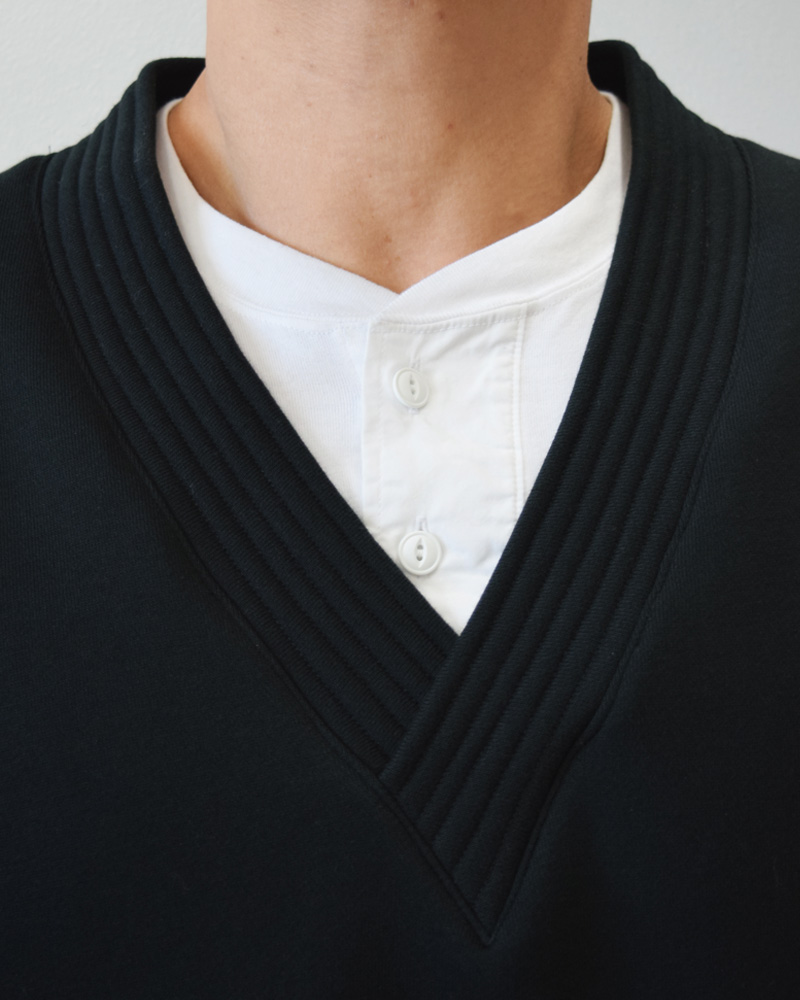 Yoshiyuki’s classic sweatshirt has been updated with a new fabric and silhouette. The thick collar, reminiscent of traditional martial arts uniforms, remains,