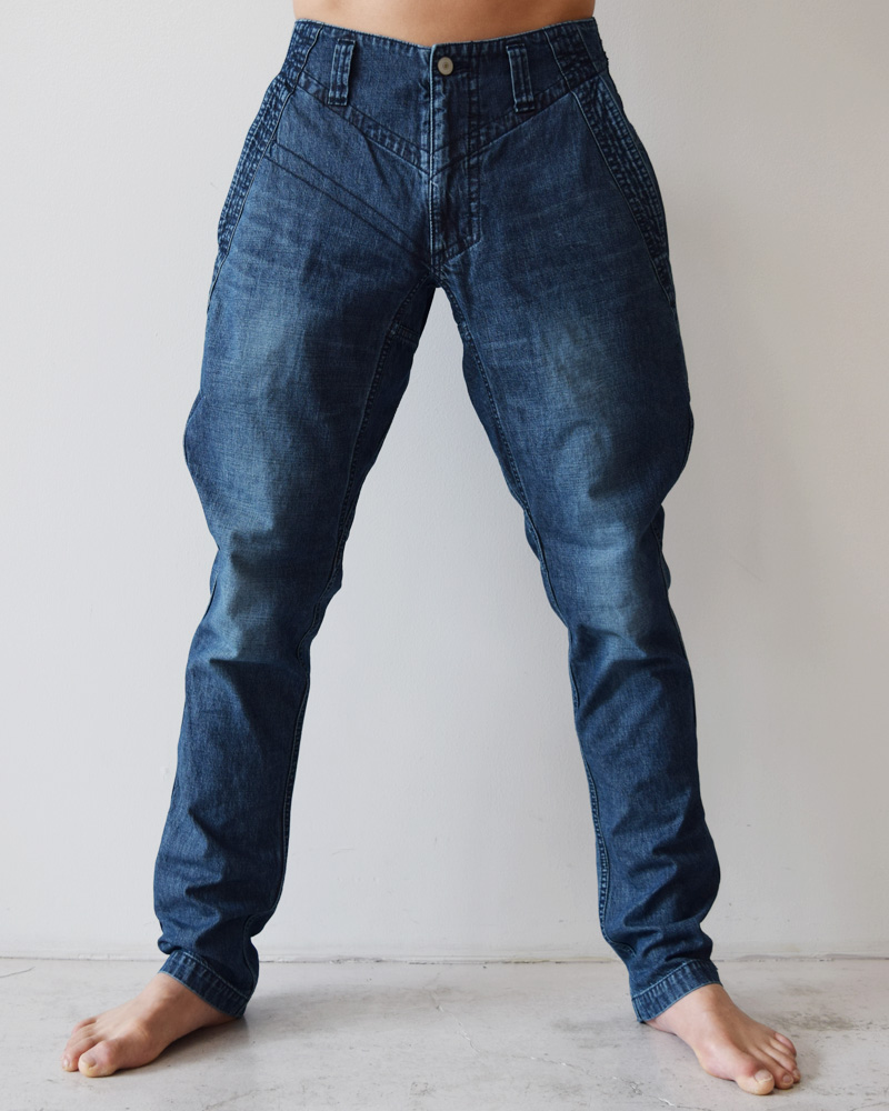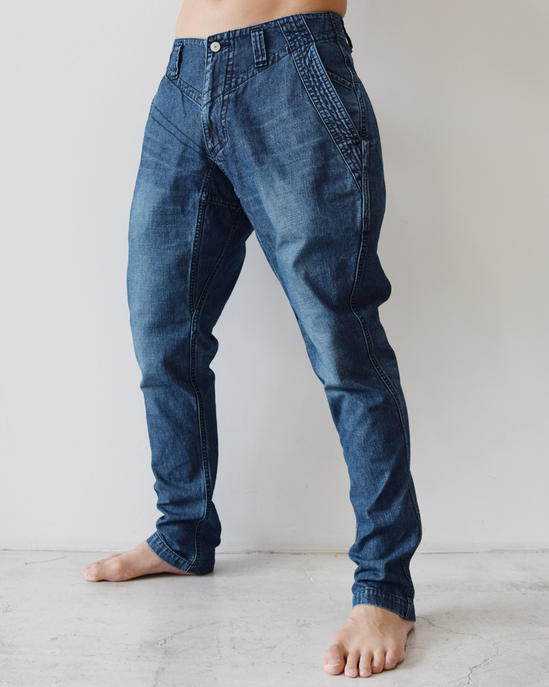 These pants feature a riding-style design with a relaxed fit around the hips and thighs, sharply tapering towards the cuffs. They offer both ample room around the waist and a sleek, streamlined silhouette from the knees down.Made from 10oz denim, the material is light enough for summer without feeling too heavy.