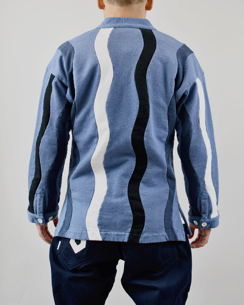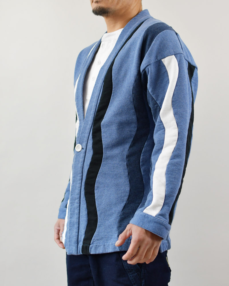 A front-opening haori with a single button, inspired by the “Tatewaku Mon Odoshi Nimaido Gusoku” armor from the Edo period. This armor, passed down through the Ikeda family of Himeji Castle, is a rare female armor with a refined and elegant design, still exuding a strong presence today. To translate the beautiful “Tatewaku Mon” pattern into modern wear, the design simplifies the details while using fabric transitions to emphasize the armor’s unique texture, creating an organic and sophisticated feel.