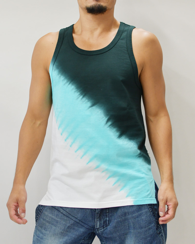 Yoshiyuki / Tank-top #5 “Diagonal-gradation Dye” [black&sky]