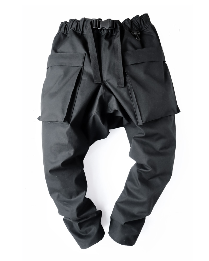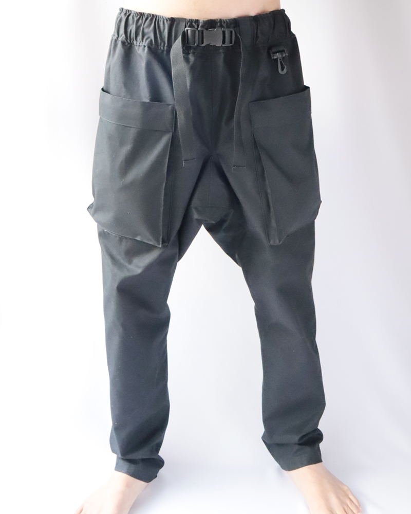 The waist is adjustable with a buckle-attached nylon tape waist cord. There are large, flap-covered double-layer pockets on each side,as well as a carabiner on the left front and a nylon tape belt loop on the right rear, adding both style and functionality.