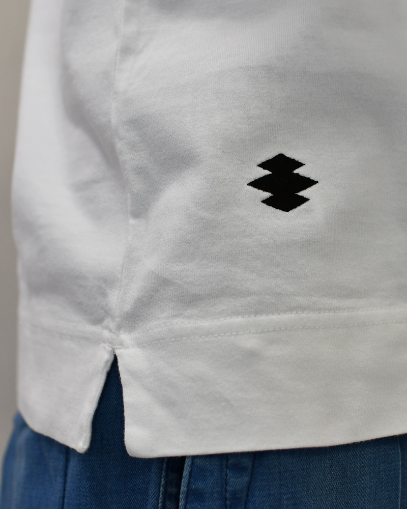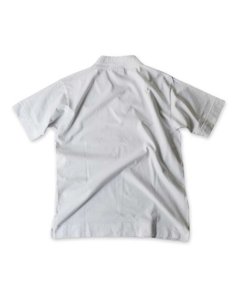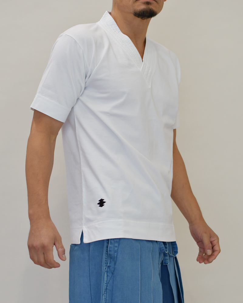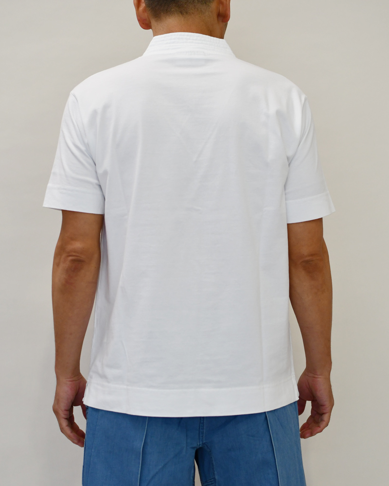 This short-sleeve Knit Top features a reinforced collar that evokes the look of martial arts uniforms.